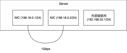 1Gbpsの速度のLANケーブルの速度測定をしようとして、サーバーにあるLANポート二つにLANケーブルの両端を接続しました。