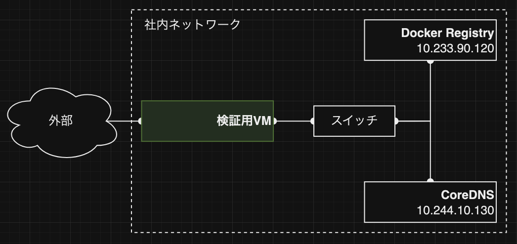 • 社員Bからは、KubernetesクラスタにPodをデプロイできたものの、podから社内サービス(docker-registry)に疎通ができないそうです。